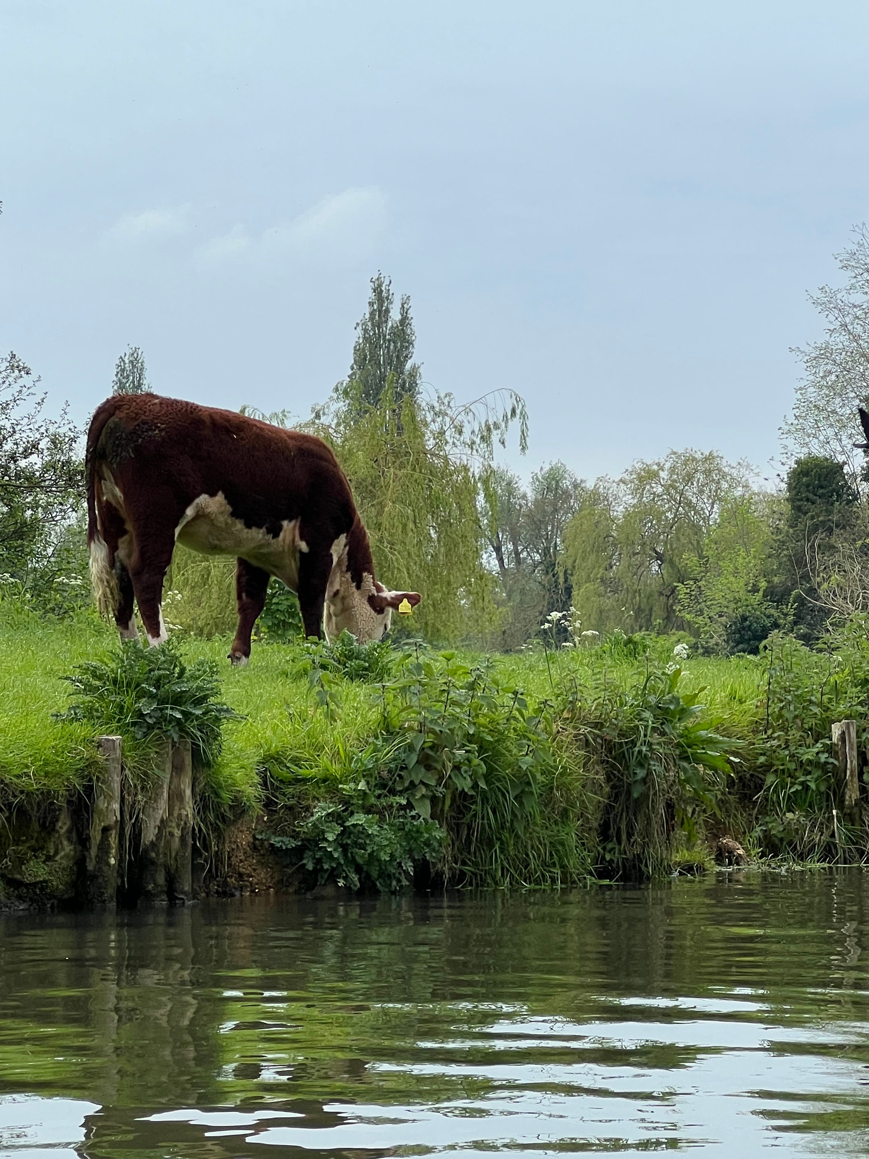 Anyway, it wasn’t at all annoying; it was even a little touchingly silly, and allowed my son and me to trade a few wry smiles along the way. Everything was idyllic—the cool breezes, the mild English sunlight, the gentle lapping of the water against our shallow hull. And one mingles with such elevated and glitteringly gay society along the river’s course: there were some very fine ducks, and a few grandly graceful swans, and one blue heron, as well as some extremely lovely cows contentedly grazing in the riparian pastures or reclining in the shade of willows. When we returned, after nearly an hour, I slipped the young man a £20 note, noticing as I did so that he appeared to be about eighteen years old.